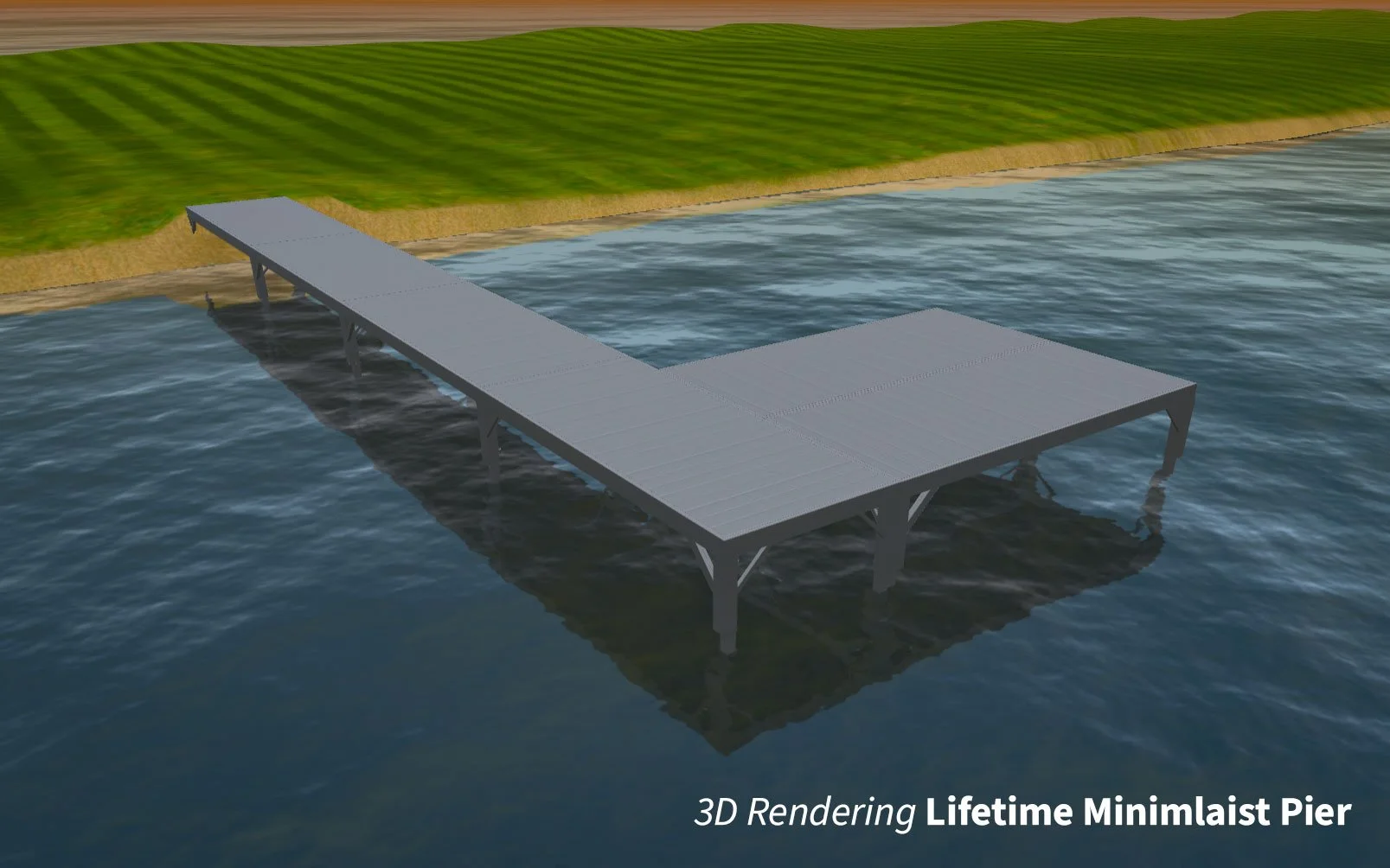 A clean, durable aluminum pier system designed for modern waterfront properties. The Minimalist configuration includes a 5’ x 48’ main walkway and a