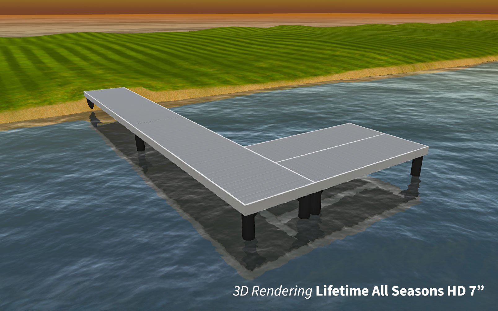 The Lifetime All Seasons HD 7 Kit offers a modern 7” steel piling dock system, topped with renewable HDPE decking and designed to last for decades with no seasonal maintenance fee’s for installation and removal that can delay lake owners from enjoying the water every spring.
