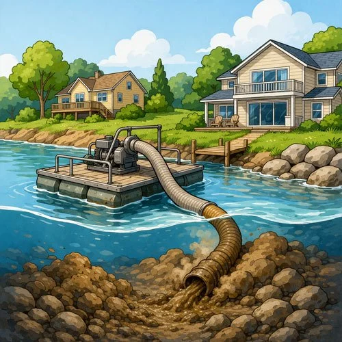 From marinas and canals to residential shorelines, we remove sediment, restore depth, and improve water access with practical, job-site-focused solutions.