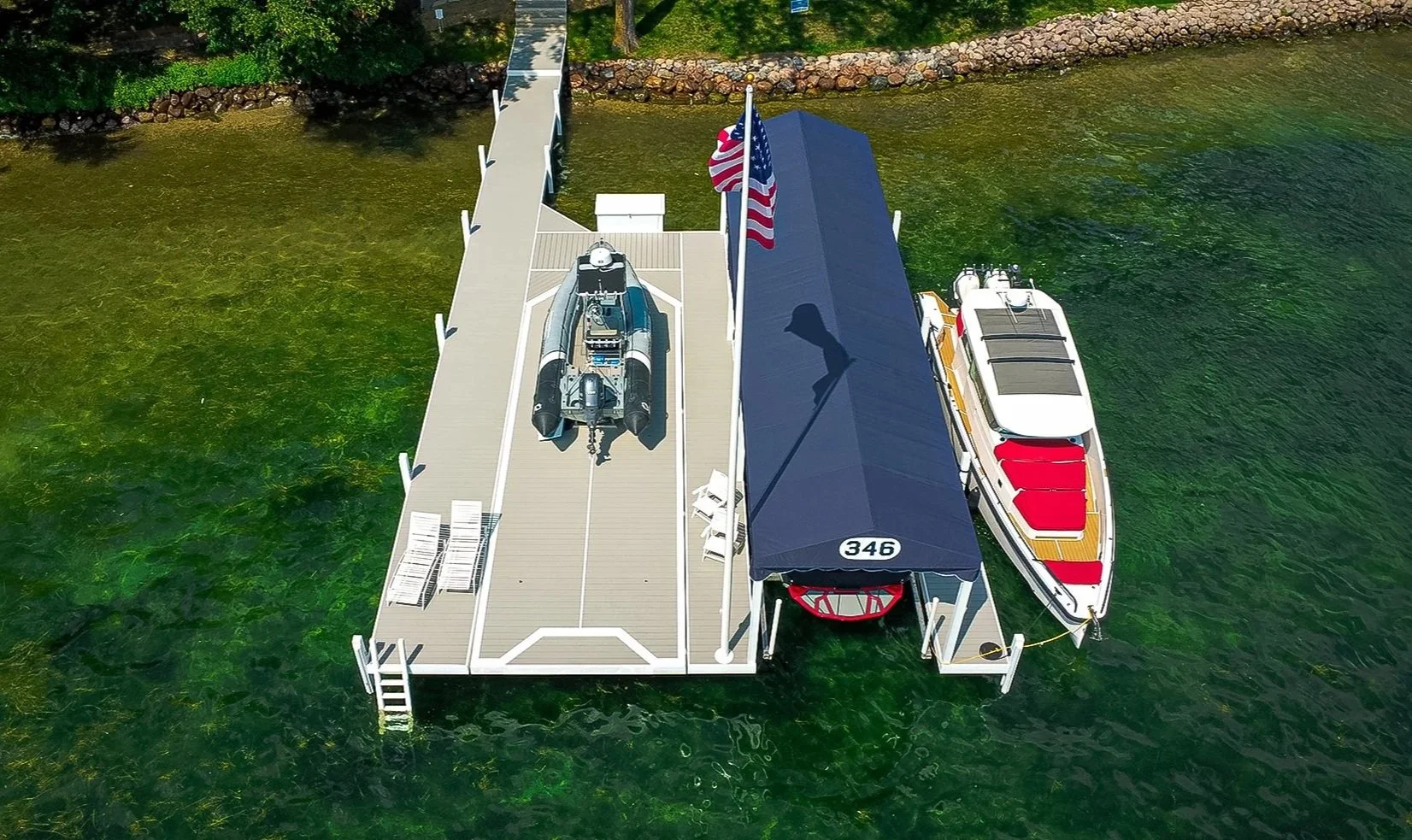 Engineered pier and lift systems for Fox Lake, Pistakee, Channel Lake, and surrounding waters.
